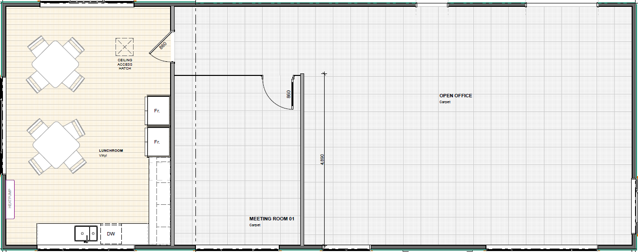 Built by Transbuild Commercial, New Zealand’s trusted transportable builder, this ready-made layout includes a large open-plan workspace, a private meeting room, and a fully separate staff kitchen.