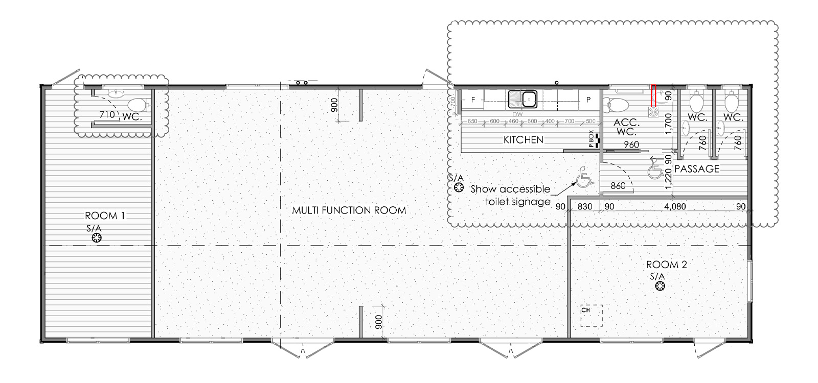 Large open plan area with additional meeting room or office. Storage room with additional toilet, kitchen area and accessible toilets include female and male toilet.