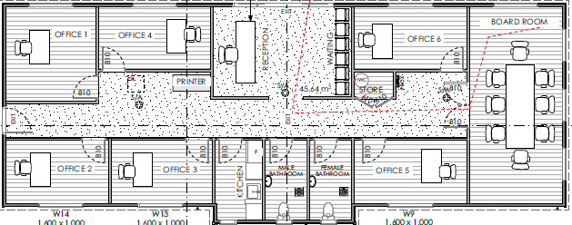 With a welcoming reception area, six private offices, a spacious boardroom, and shared amenities, this layout offers everything your team needs to collaborate and thrive.