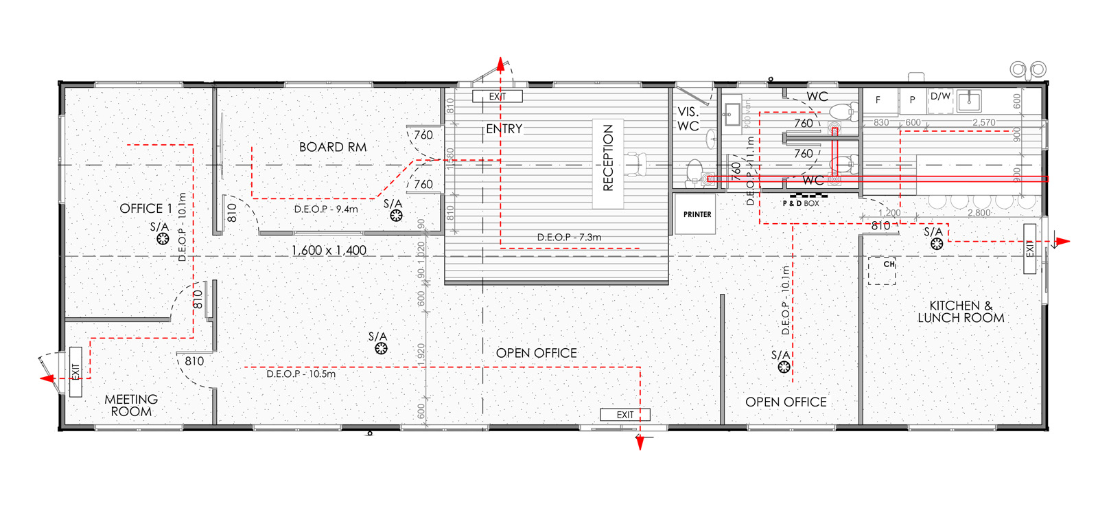 The optimal set up for business operations with 3 Open Plan areas for employee work spaces. Plus 2 Board/Meeting Rooms.