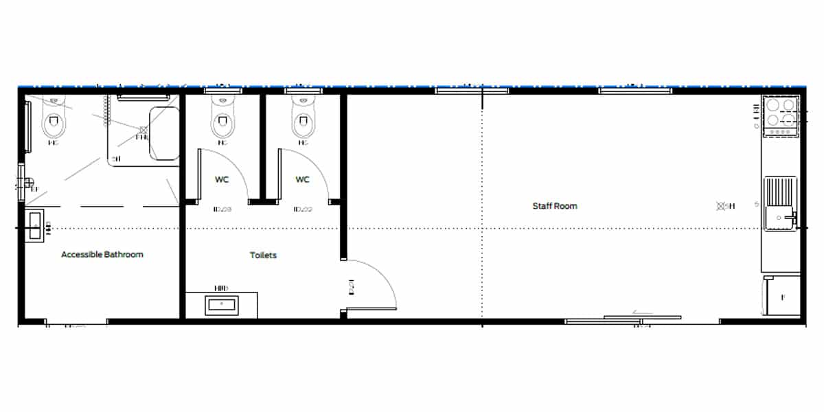 This 43m² transportable unit offers a well-balanced combination of comfort and practicality, designed to support your team onsite or on location. With a spacious open-plan transportable staff room complete with a fully functioning kitchen, it provides a welcoming break area for teams of all sizes. The layout also features a separate accessible bathroom with shower, plus a two-stall toilet bathroom with vanity basin – making it a highly functional and compliant facility. Built off-site as a prefab solution, this turnkey unit is delivered ready to connect, helping you save valuable time and money with a fast, reliable 10 week build time.