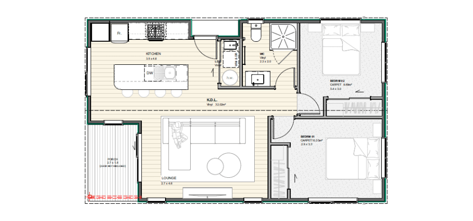 The 2-bedroom Dixon is a cleverly designed portable house blending charm and sophistication. It also offers a thoughtfully designed kitchen that’s perfect for entertaining.