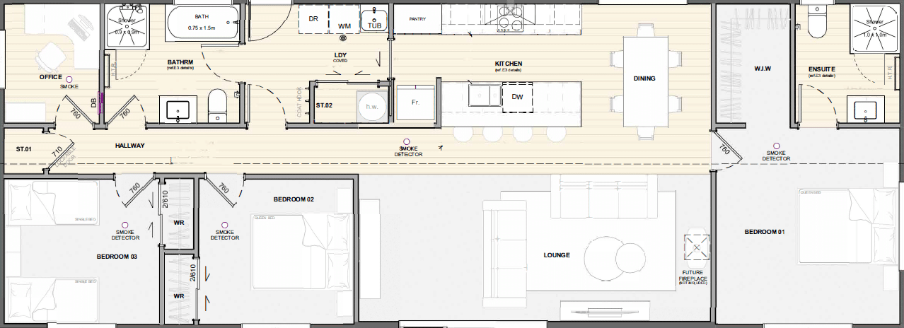 This architecturally designed 120m² transportable home has been purpose-built for rural living, with a layout that supports the realities of working life on the land while maintaining comfort where it matters.